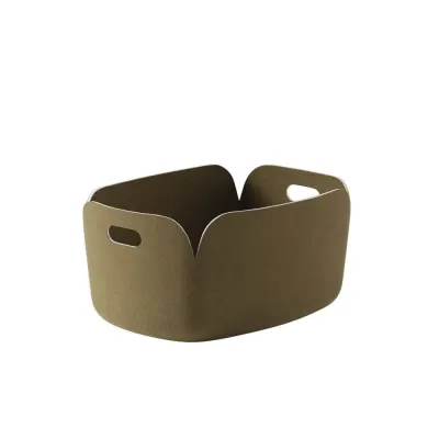 The Muuto Restore basket, designed by Mika Tolvanen, takes storage solutions to a new and sustainable level. The basket is made of Polymer felt, which is made from recycled plastic and is available in many beautiful colors that can easily be combined with the other Restore products or Muuto's other beautiful designs.