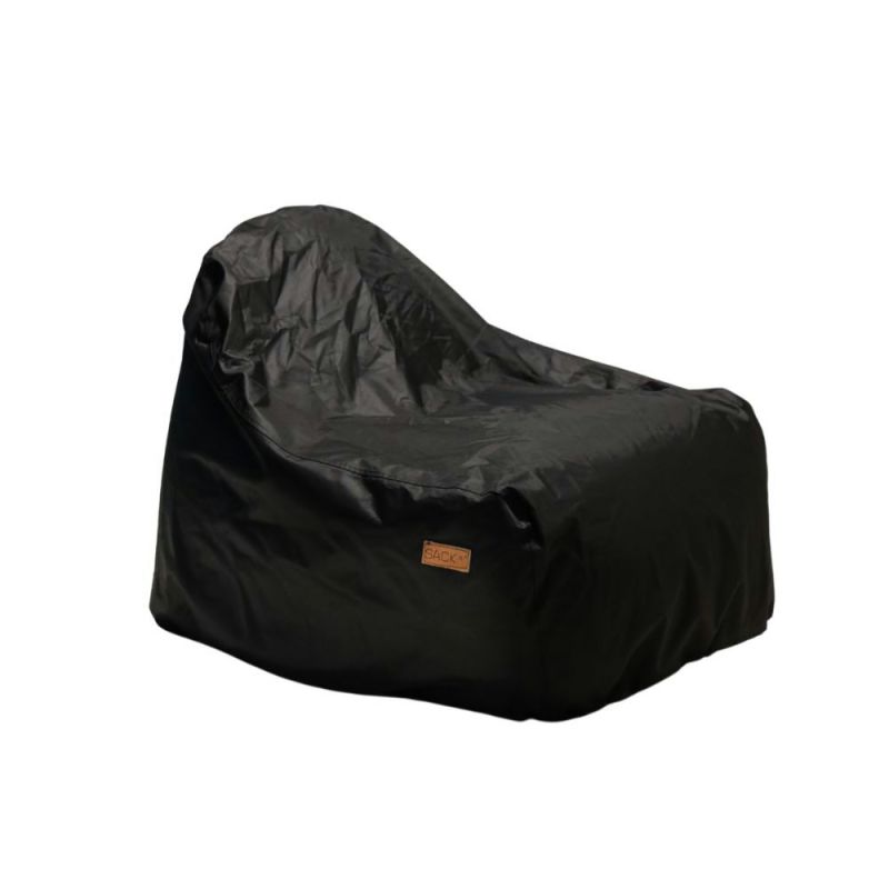 The cover is made of black water-repellent material and is custom-made for the beanbag.