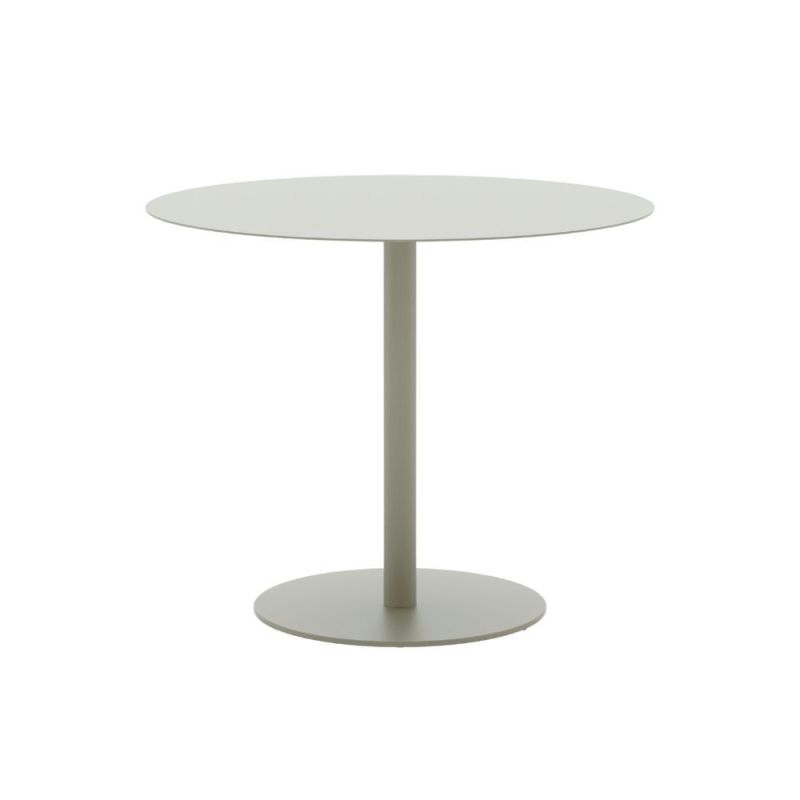 May Bistro Table. A minimalist café table for both private and public spaces. Choose between a round or square table top, both with an elegant centered column base. Perfect in combination with the May chairs and ideal for everything from balconies to café terraces.