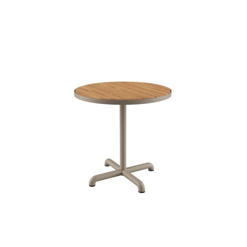 Kirra Café Table is a minimalist outdoor café table made from powder-coated aluminum and teak wood. The lightweight, rust-free aluminum ensures durability, while the warm glow and natural patina of the teak wood adds character and charm over time, perfect for smaller outdoor spaces such as the balcony, terrace or a sunny corner of the garden where coffee is enjoyed and conversation flows.