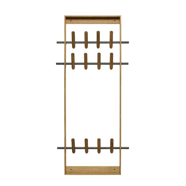 The coat rack is made of Oak with Wire in metal, which can be adjusted in both height and position of the wooden hooks. Coat Frame is a strong proof that storage furniture and jacket storage can be done in an elegant and sustainable way.