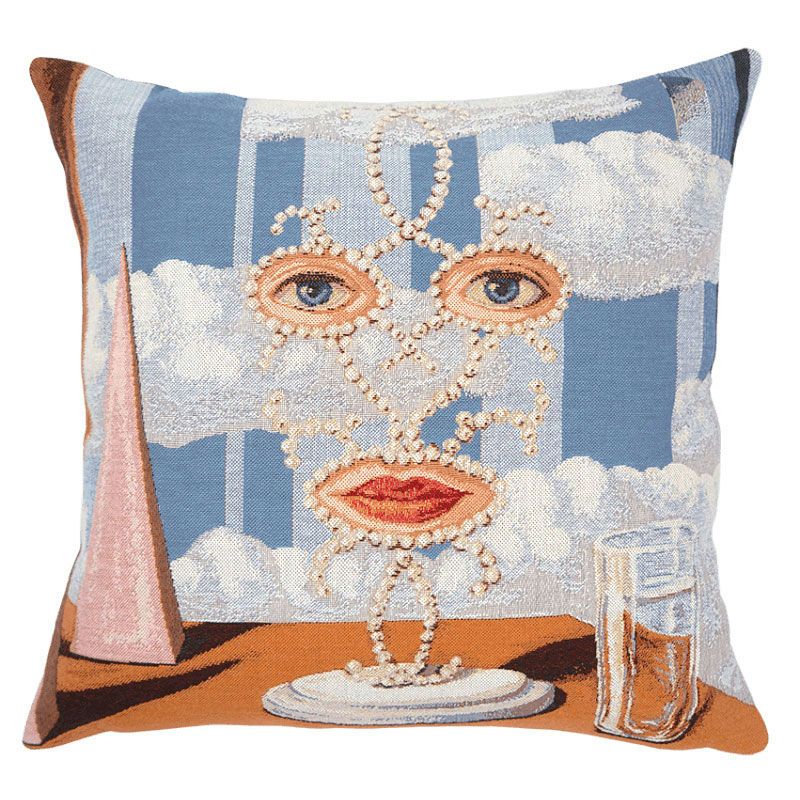 Poulin Designs unique and one-of-a-kind cushions, featuring Magrittes surreal motifs!