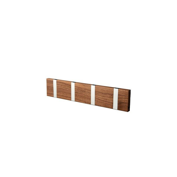 KNAX from Danish LoCa is a series of horizontal coat racks available in many different variants for every need. The coat rack is available in either Soap-treated Oak, Oiled Walnut, Black or White lacquered MDF. All variants are available with either 4 or 6 aluminum hooks to suit most storage needs in the home. The product is 100% Danish produced.