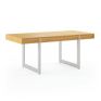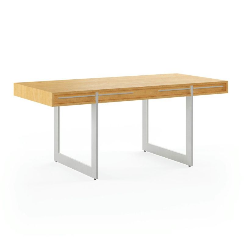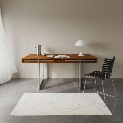 The AK 1340 desk from Naver Collection, designed by Nissen & Gehl MDD, combines modern functionality with classic craftsmanship. The desk features hidden wiring, cable holes, and dovetailed drawers with swallowtails. The warm glow of the wood contrasts beautifully with the slender legs and handles in stainless steel, giving the desk a light and elegant look.
