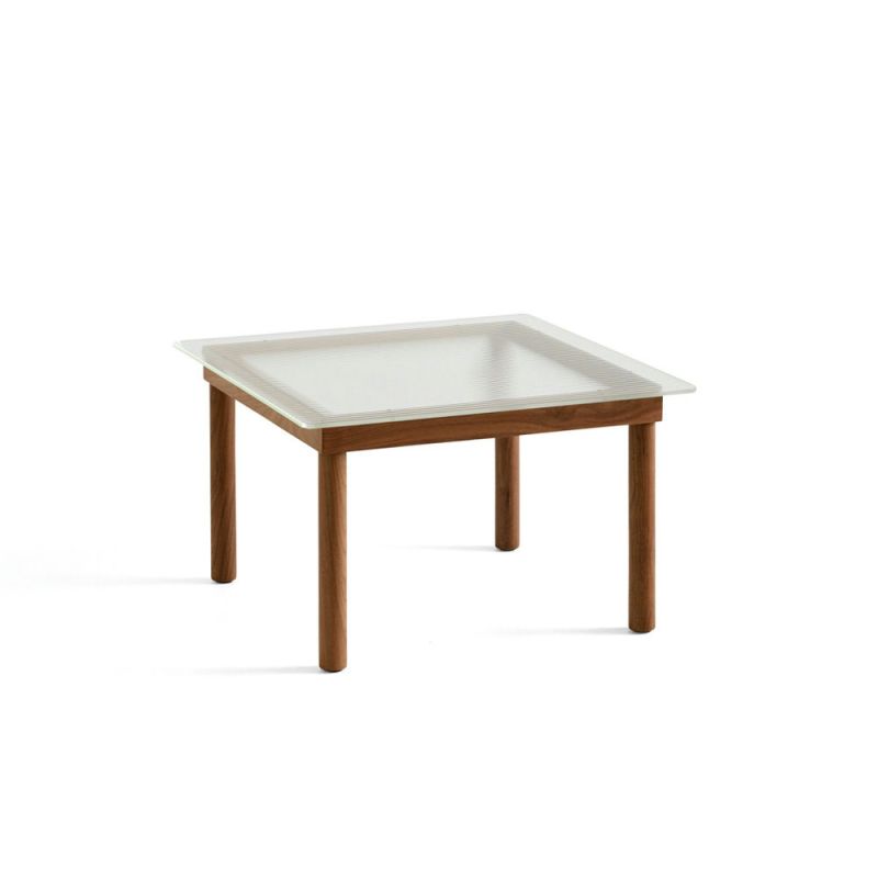 The Kofi series consists of elegant and versatile coffee tables with glass tops. The clean simplicity in dimensions and proportions is emphasized by the careful attention to detail, resulting in a clean aesthetic with clear lines and a timeless quality. The table has a solid oak or walnut frame in FSC-certified wood with a water-based lacquer, and the tabletop is made of either smooth or grooved glass with a characteristic ribbed structure.