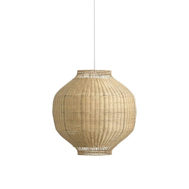 The Tomori lampshade, designed by Jin Kuramoto, is an elegant combination of craftsmanship and functionality. It is carefully handcrafted from Indonesian rattan and supported by an internal steel frame that ensures a stable and well-balanced suspension. With its beautiful light, Tomori contributes to a warm and inviting atmosphere, making it ideal for the hallway, bedroom or as a mood creator over the kitchen table or even in a covered conservatory.