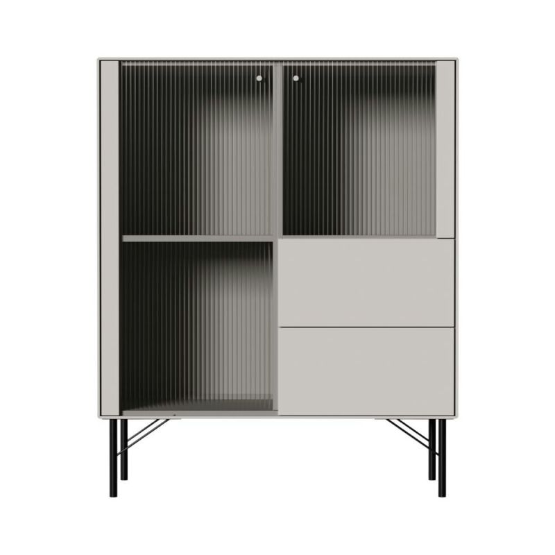 Edge cabinet with glass doors and drawers fluted glass. Stylish cabinet with legs from Edge by Hammel, designed by Says Who. Finished in the new micaceous light grey color with two drawers and two doors in elegant fluted glass. Ideal for storage in the dining room, living room or hallway. Mix and match with the rest of the Edge series to create your personal solution. Edge by Hammel combines Nordic minimalism and handleless design with solid Danish craftsmanship produced with a focus on quality and sustainability in Hammel.
