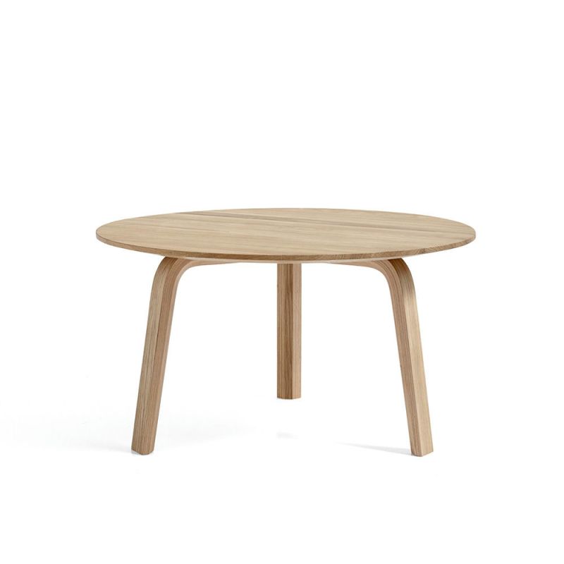 HAY's Bella Coffee Table is a simple table that is small enough to place anywhere. The ultra-thin tabletop and legs in molded oak veneer create a functional and lightweight look, and the table can be used alone or set up in pairs or groups.