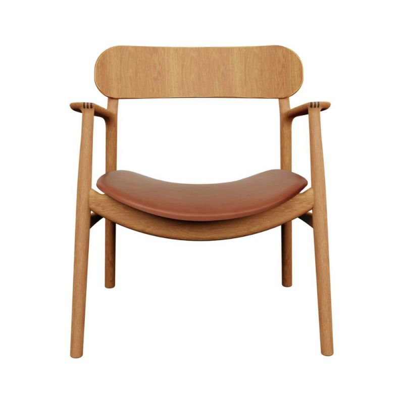 Comfortable wooden chair with elegant details. The seat and backrest are carefully shaped to provide optimal support and freedom to change seating positions, perfect for both long conversations and short breaks.