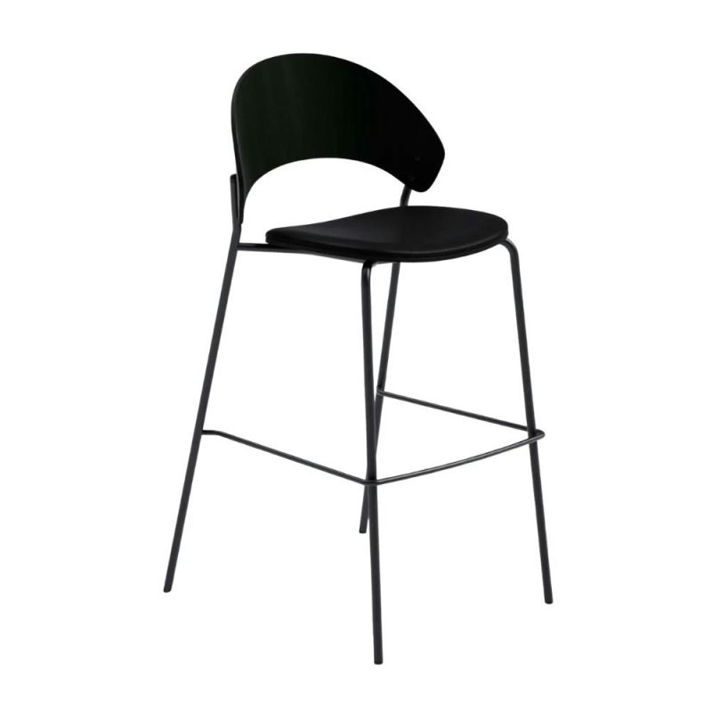 Dosina Counter Stool Upholstery. The DOSINA series combines solid oak and steel in a streamlined design that balances function, comfort and timeless aesthetics. Inspired by the dosina shell, the chair has a distinctive fan-shaped back that provides generous support and high seating comfort. The slim, symmetrical legs and clean lines emphasize the chair's minimalist expression. The chair is lightweight, stackable and recognizable from all angles, ideal as a dining chair at home, office chair or in public spaces such as cafés and restaurants. With the option of row linking, it is also suitable for events where flexible set-up and easy storage are needed.