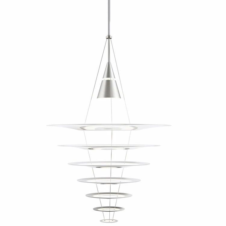 The Enigma pendant lights from Louis Poulsen were designed by Japanese designer Shoichi Uchiyama in 2003. Uchiyama approached Louis Poulsen with a design idea that involved floating shades. The shades would be held up by thin wires, creating a beautiful, transparent and minimalist look.
