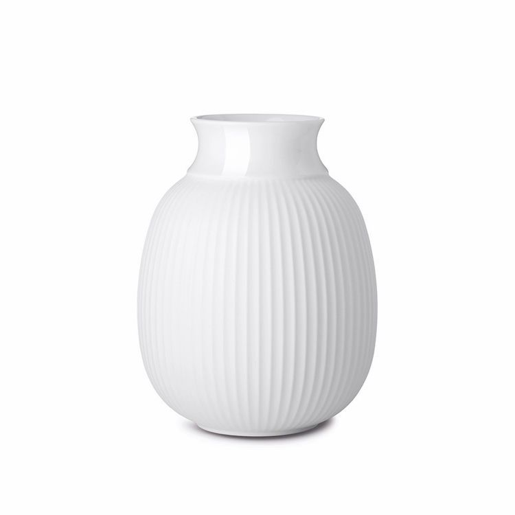 The Lyngby Curve vase is designed based on the classic Lyngby vase. Inspired by the original design, the vase is created with ribs, but with the addition of a beautiful glossy glazed neck.