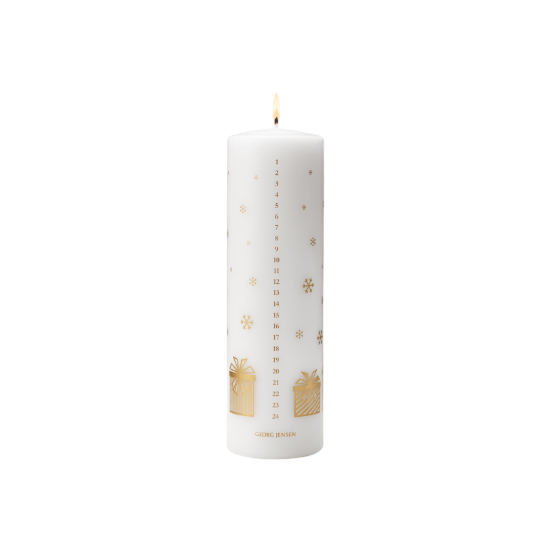 Countdown to Christmas Eve with this elegant calendar candle, adorned with motifs of beautiful Christmas gifts and falling snowflakes. The flickering candle brings the cosy Christmas spirit to life day by day in December and marks all 24 days until Christmas.