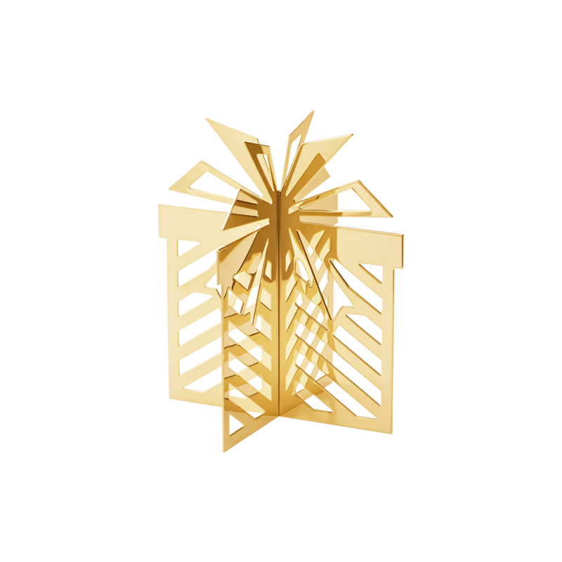 This elegant ornament, plated with 18-carat gold, showcases the charm of a beautifully wrapped Christmas gift, complete with a festive bow on top. Let the Christmas ornament sparkle on its own, or combine it with various decorations in your own creative arrangement.
