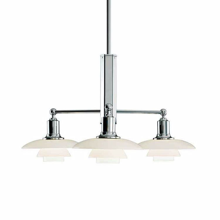 The PH 2/1 Stem Chandelier from Louis Poulsen is made to reflect light in the best possible way, without glare. The downward light is gently cast around the room with the shape of the shades and their matte interior.