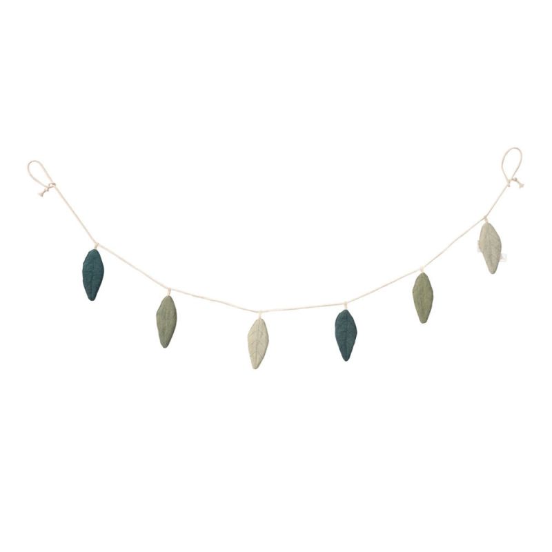 A garland is a great addition to a nursery. It can be hung on a four-poster bed or cot, used as a wall decoration or placed in a window. This garland consists of 6 sailboats in shades of green, yellow and blue, mounted on a cotton cord.