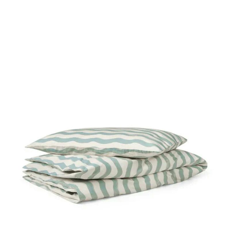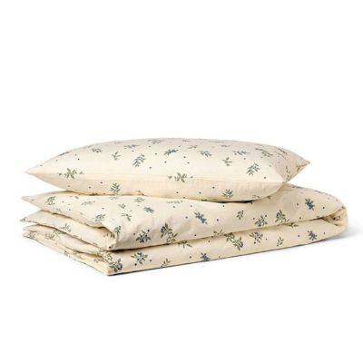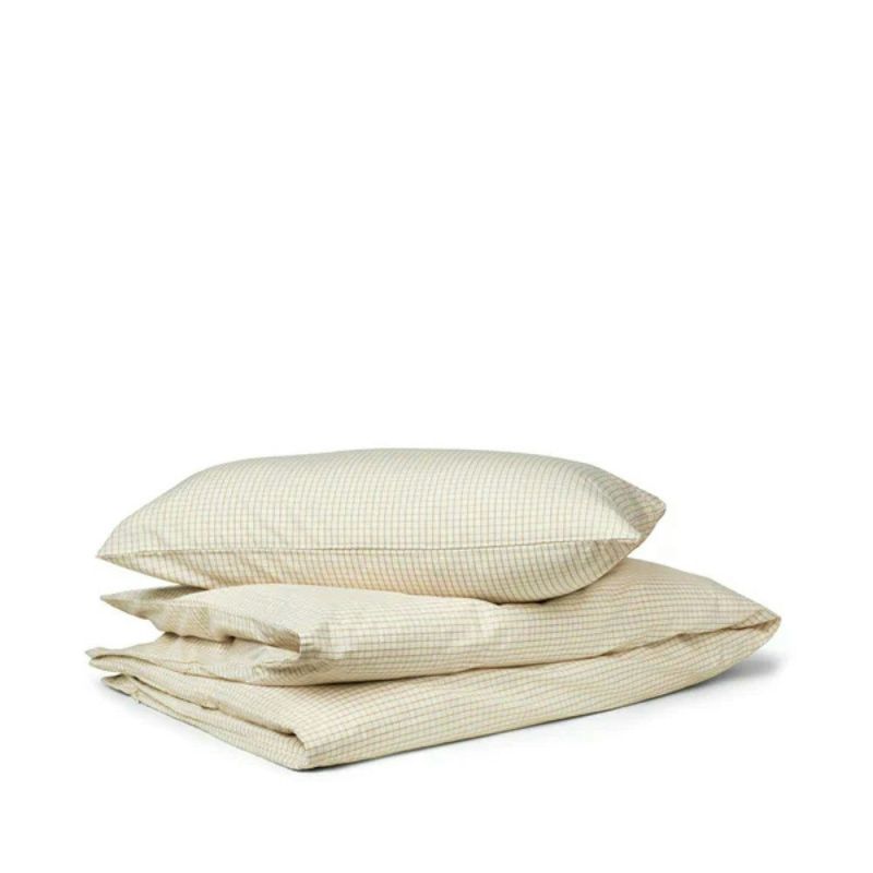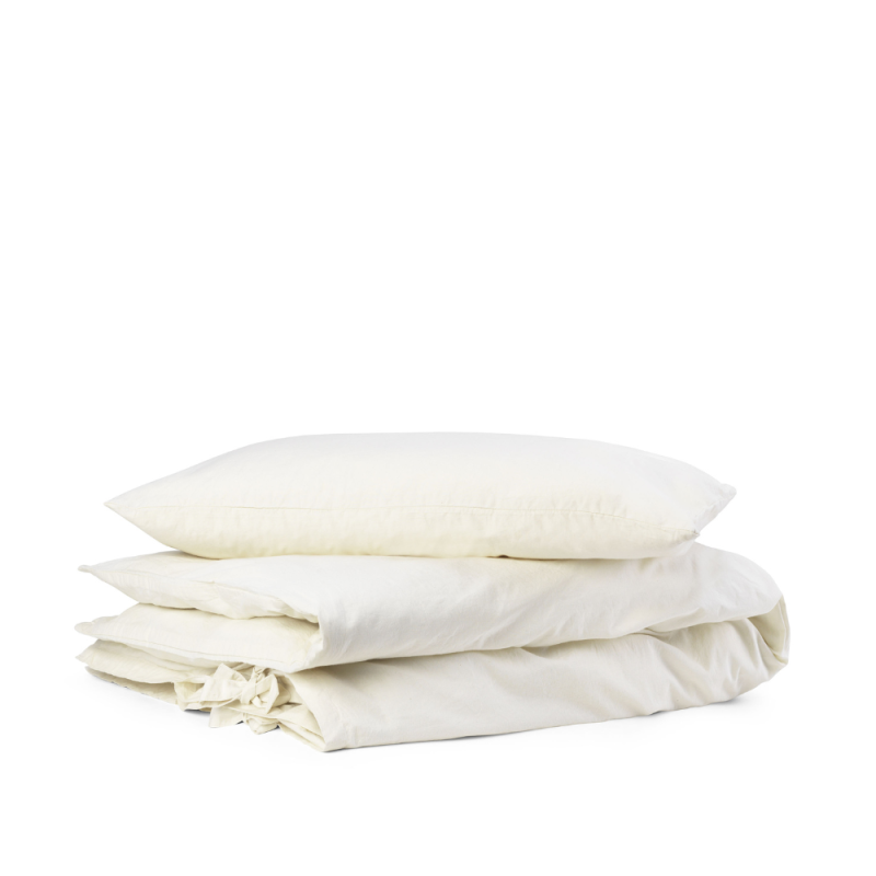 Soft bed linen in 100% organic cotton percale. The dense percale weave is not only durable and beautiful to look at, but also lightweight and breathable. The bedding is pre-washed, which gives a naturally curly look and makes the bedding incredibly soft against the skin and it only gets softer the more it is used. The pillowcase has a zipper, while the duvet cover closes with fine ties.