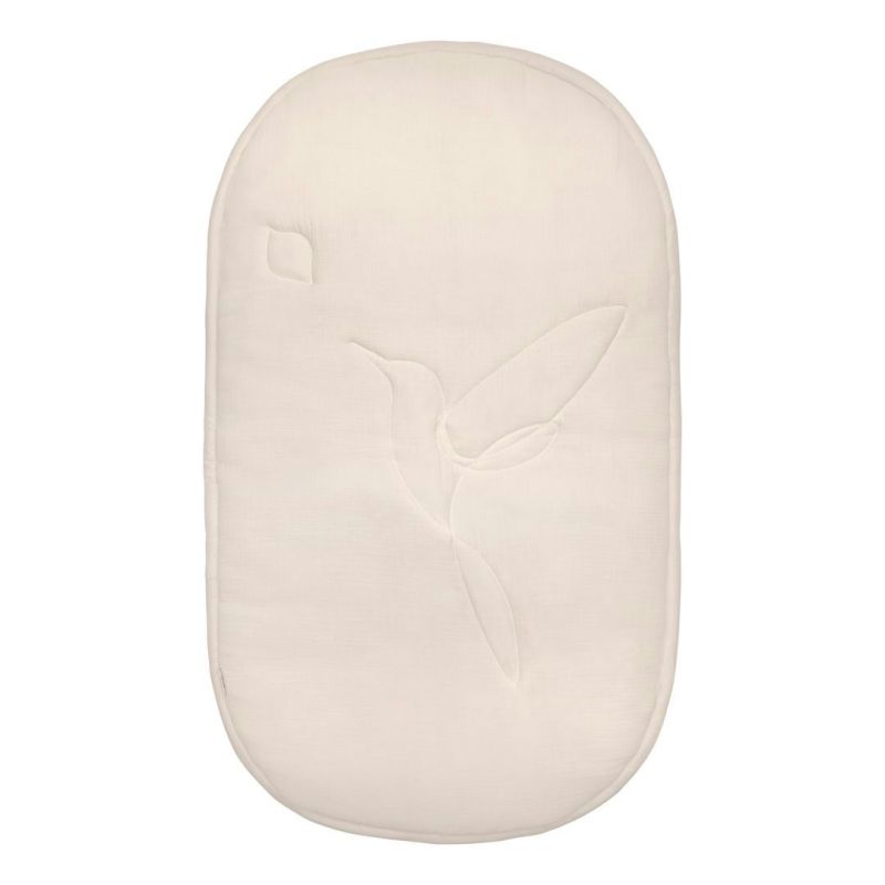 This beautiful oval play rug, made from organic muslin cotton, is perfect for creating a soft and comfortable play area on the floor. It is carefully designed to fit perfectly in our Kai crib and can also be used as a top mattress for extra comfort and support.