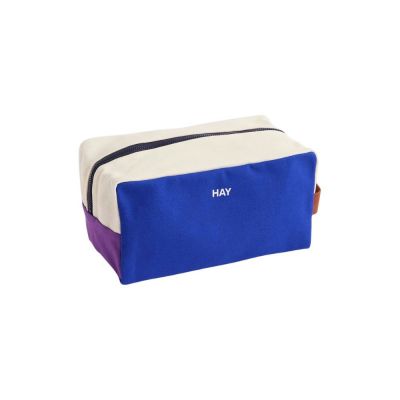 HAY Multi Wash Bag Colourful and practical toilet bag made from durable, organic cotton. Features a zip, inner pocket, and a strap for hanging. Spacious storage for cosmetics and bathroom items. Available in various colours.