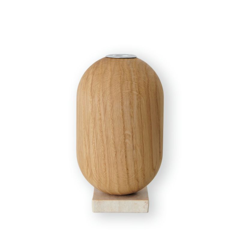 The Ellipse series is an elegant collection featuring a vase, candlestick, and tealight holder. The series combines Intarsia Furniture's furniture heritage with Nanna Aakjær's modern interpretation, inspired by her grandfather Jørgen Aakjær Jørgensen's design philosophy. The contrast between sharp lines and soft shapes creates a unique expression.