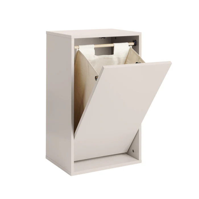 Stylish Laundry Box. The wall-mounted laundry box is designed with a focus on functionality and a simple, Nordic expression. The wall-mounted design saves space, makes floor cleaning easier, and protects against moisture from the bathroom floor.
