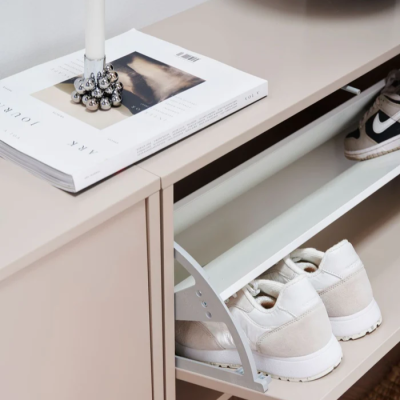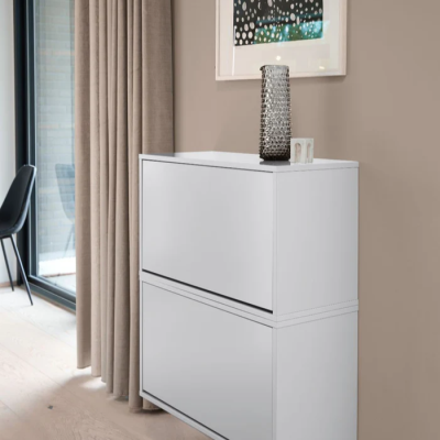 ReCollector Shoe Box. Create your own storage wall with style. The Shoe Box is the perfect solution for organizing your shoes in a stylish and efficient way. Available in six different versions five beautiful colors and an oak veneer each box can hold 68 pairs of shoes, providing ample space for sneakers, boots, and elegant shoes.