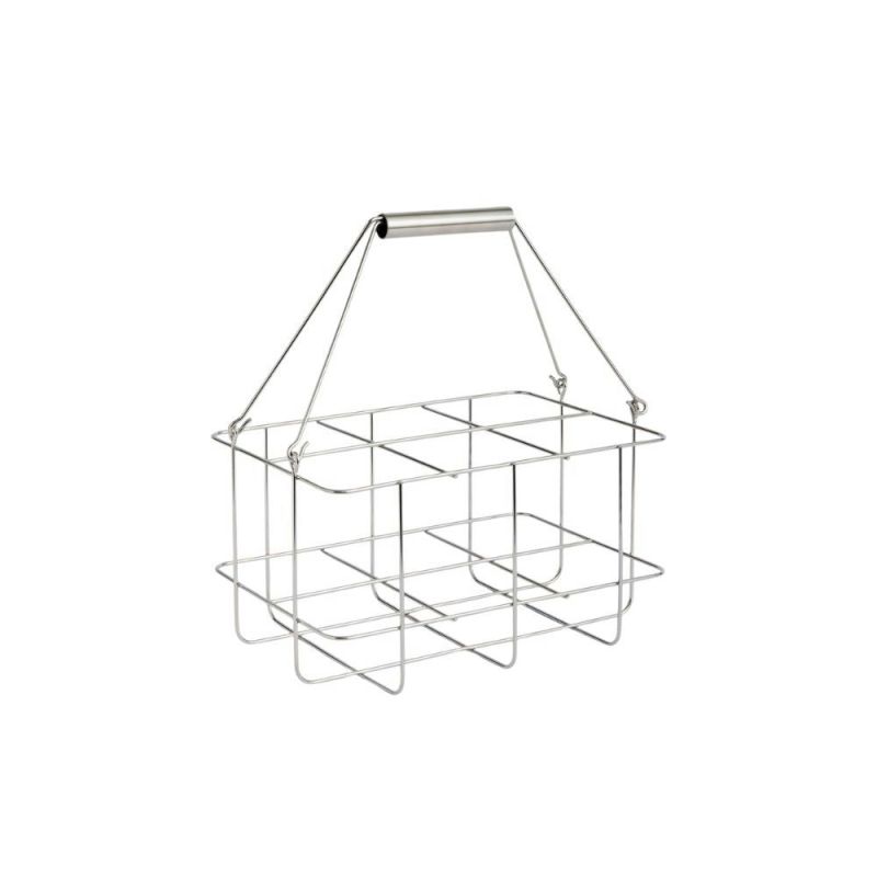 Outdoor Market Bottle Carrier fra HAY Outdoor Market by Jasper Morrison er designet til udendørs brug med fokus på holdbarhed og funktionalitet. Fremstillet i rustfrit stål og kan rumme op til seks flasker perfekt til vin, vand eller andre drikkevarer på stranden, i haven eller til udendørs sammenkomster.