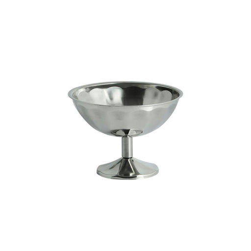 HAY's Italian Dessert Cup is made of polished stainless steel with a faceted design. The short stem and wide, wavy bowl provide an elegant expression, ideal for serving ice cream, fruit, and other cold desserts. Made in Italy.