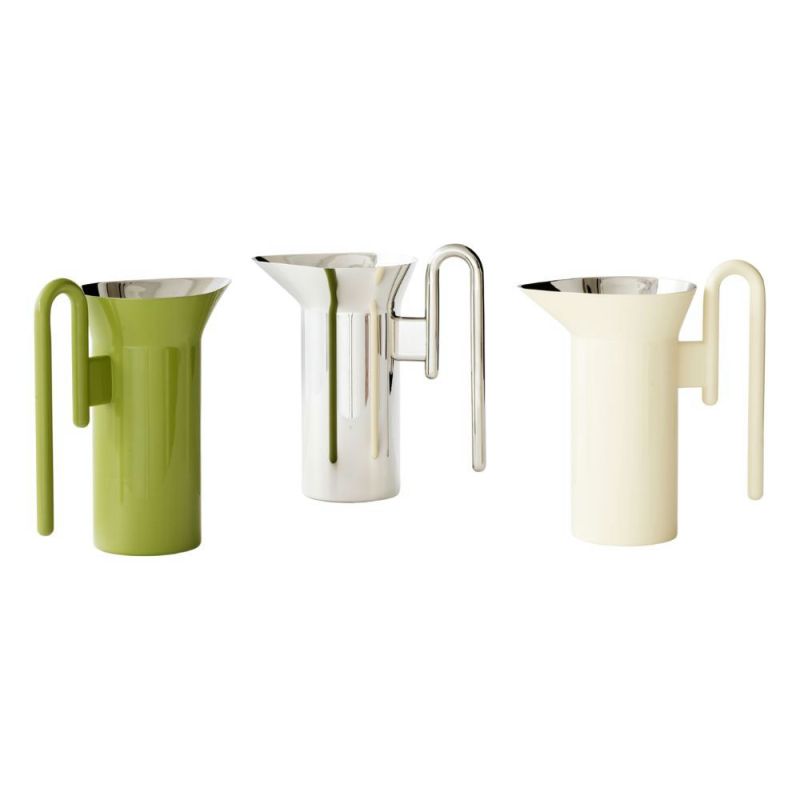 The Momento jug is the culmination of years of product research to create a drip-free container with the perfect pouring shape. Available in two variants, Polished Stainless Steel and Ivory, it can hold up to 1 liter of liquid.