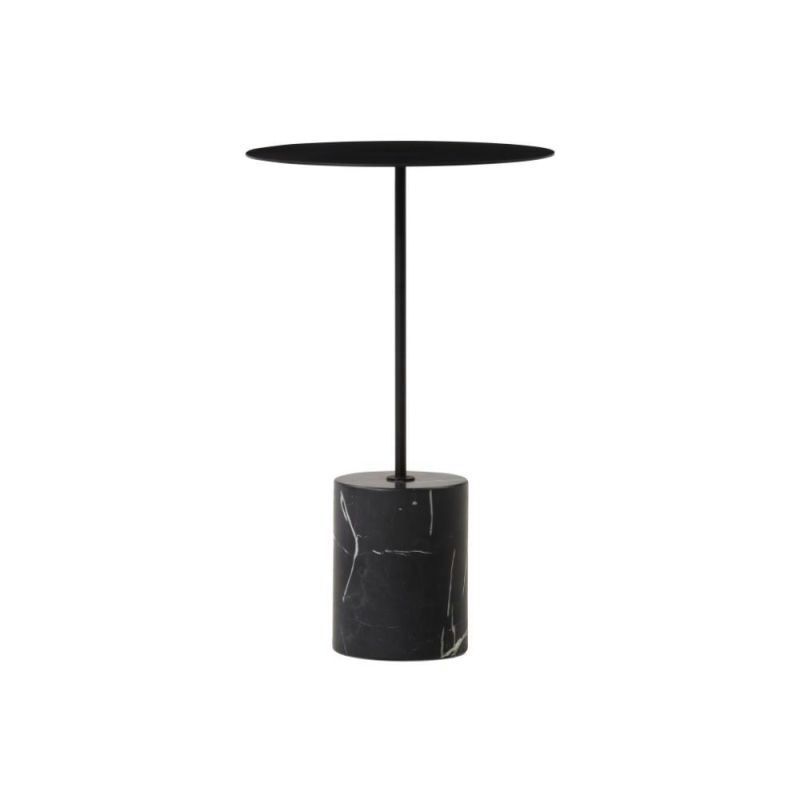 Calibre Side Table Sculptural Elegance in Marble. Designed by Berlin-based studio Böttcher & Kayser, the Calibre series is characterized by its clean, geometric design language. The cylindrical base in black Nero Marquina marble provides both stability and a refined look. The series consists of three variants in different heights and sizes, one with a practical handle. An elegant and timeless addition to any room.