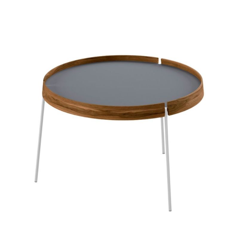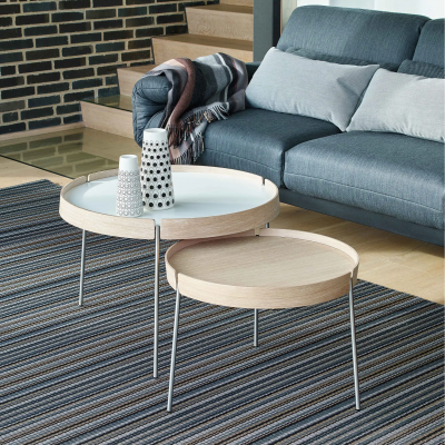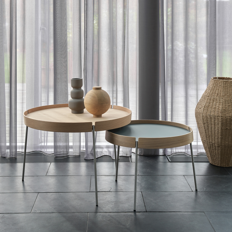 The AK 710-725-750 Turn tray tables with reversible tray (1 side veneer / 1 side laminate) give you the opportunity to play with your creativity. The coffee tables can be combined into a completely personal coffee table or used individually, for example as a side table next to an armchair. The tables are available in three different diameters and two heights, making it possible to combine several in harmonious constellations. Choose between eight current laminate colours and three exclusive wood types that add warmth and character. Whatever the combination, the result is a clean-lined piece of furniture that is both practical and visually light and elegant in the room.
