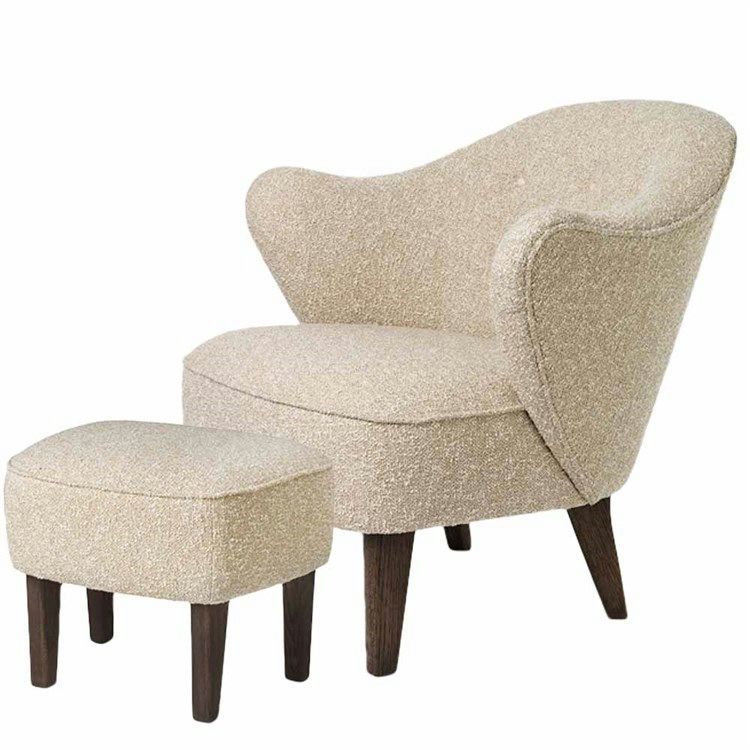 The Ingeborg armchair from Audo is well-designed, elegant and extremely comfortable, and together with the accompanying pouf, you can meander here for many hours. The armchair is available in 3 beautiful variants, with either Sacho Zero textile or Sheepskin textile, with a smoked oak frame that adds a beautiful touch to the soft materials.