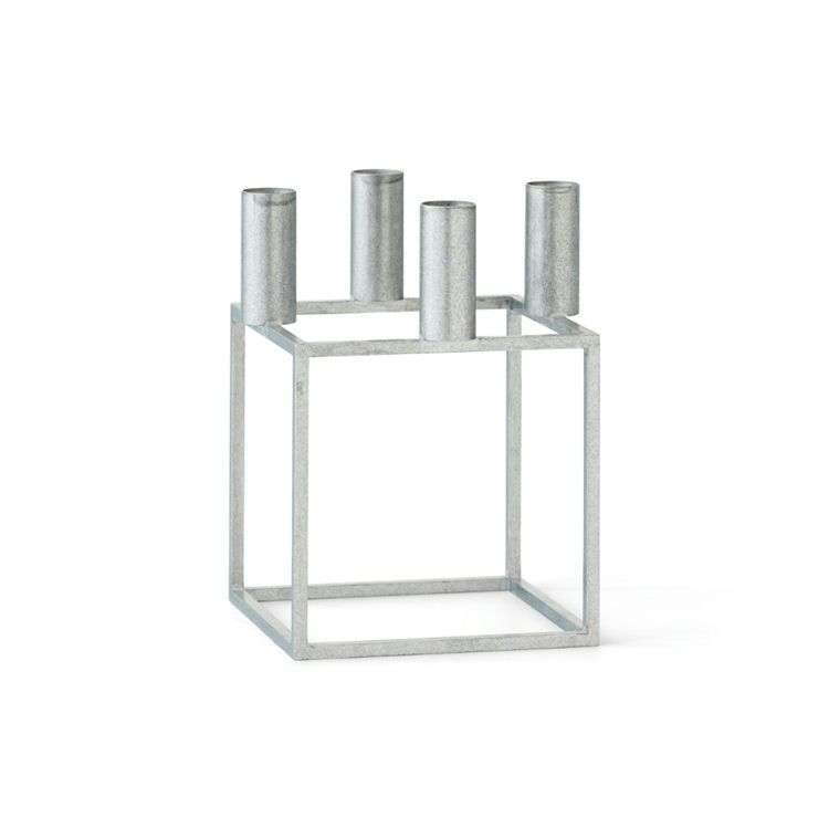 Kubus 4 candleholder. Mogens Lassen designed the first Kubus candleholder in 1962 for a restaurant in North Zealand. With its strict design language and modernist expression, the Kubus series has become an icon of Danish design. Kubus 4 creates a cozy atmosphere and fits into both modern and classic homes. Available in several metals and colors - including zinc and powder-coated metal in ivory and olive green.